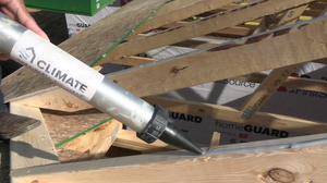 A non-slump formula for wood frame construction, CLIMATE NS® Adhesive was developed in response to the substantial loss of life and property experienced in violent weather related to climate change. More than 90% of residential structures are constructed using nailed, light wood frame methods. Wind events have been overwhelming to traditional nailed structures, but beads of Climate Adhesive applied at the interfaces between lumber framing and plywood sheathing can increase the structural integrity of a home by two to three hundred percent. This is accomplished without deviating from the Uniform Building Code. Adhesive laminated roof sheathing, and rafter connections.